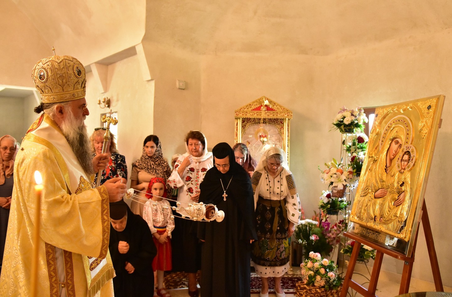La sărbătoarea mănăstirii au fost prezenți stareți și starețe ale mănăstirilor din arhiepiscopia râmnicului, dar și credincioși din cuprinsul eparhiei, având ocazia de a cinsti icoana maicii domnului ierusalimitissa. Icoana maicii domnului din ierusalim (alta decât icoana maicii domnului „ierusalimitissa" de la mormântul maicii domnului din ghetsimani) a fost pictată, conform tradiției, de sfântul evanghelist luca, după 15 ani de la înălțarea domnului în ghetsimani. In spatele mormantului maicii domnului se afla icoana facatoare de minuni a maicii domnului, ierusalimitissa. Pe piatra funerara se vede foarte bine intiparit trupul. Maica domnului aduce bucurie și comuniune, iar icoana ierusalimitissa devine odor de neprețuit a noii mănăstiri, dar și a obștii monahale și a pelerinilor. „nu te neliniști, te voi ajuta eu, căci fiul meu este. La sărbătoarea mănăstirii au fost prezenți stareți și starețe ale mănăstirilor din arhiepiscopia râmnicului, dar și credincioși din cuprinsul eparhiei, având ocazia de a cinsti icoana maicii domnului ierusalimitissa.